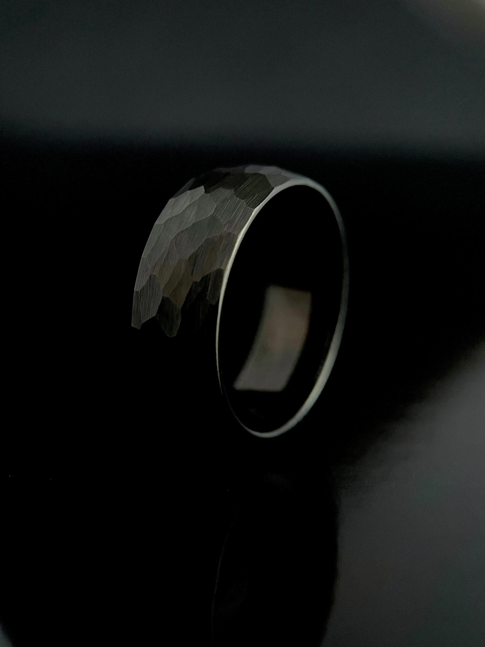 Inspired by Aether, the primordial god of light and the upper sky, this exceptional Hammered Black Tungsten Ring is crafted for those with adventurous spirits and extreme lifestyles. Its rugged, multi-faceted surface catches the light from every angle, creating a dynamic visual depth that mimics the vastness of the night sky.
